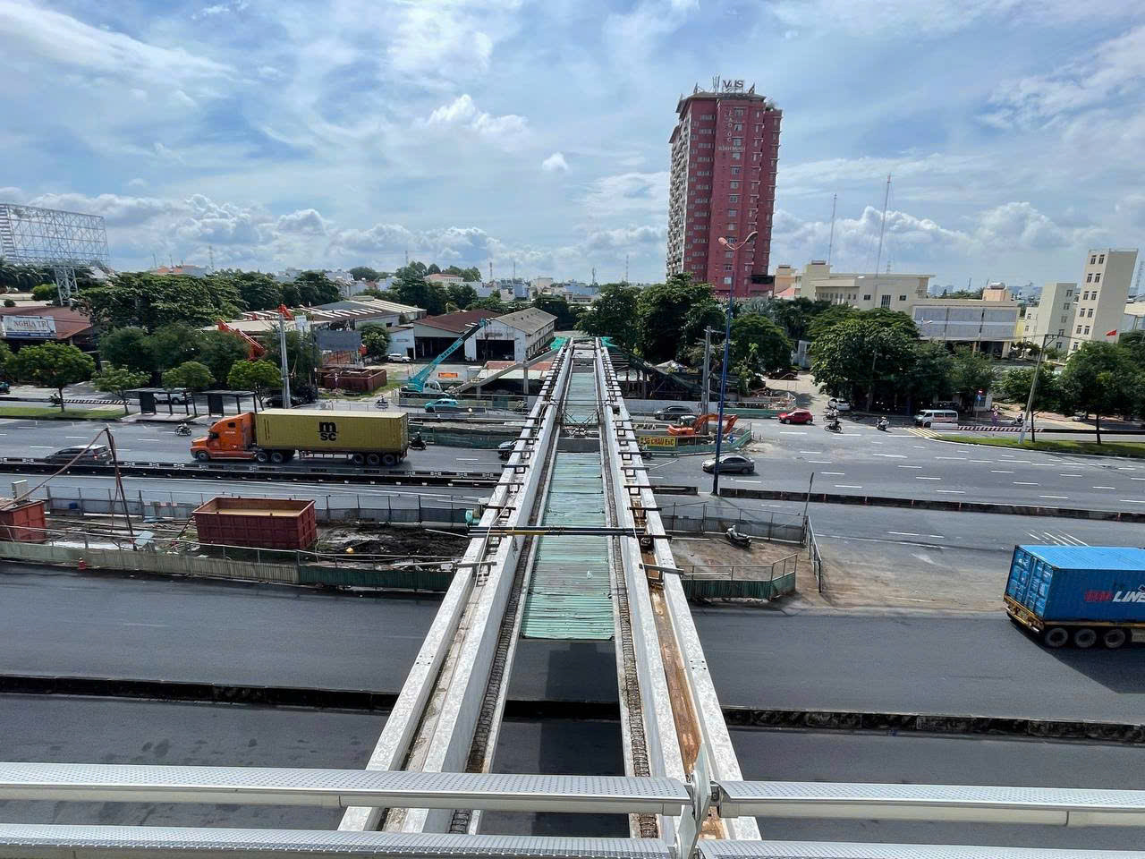 | Theo chủ đầu tư, vị trí thi công cầu vượt bộ hành kết nối nhà ga Thủ Đức có phần hạn chế (vị trí chân cầu vượt thép có mật độ lưu lượng xe lớn, tải trọng và tốc độ lưu thông cao). Ảnh: MAUR |