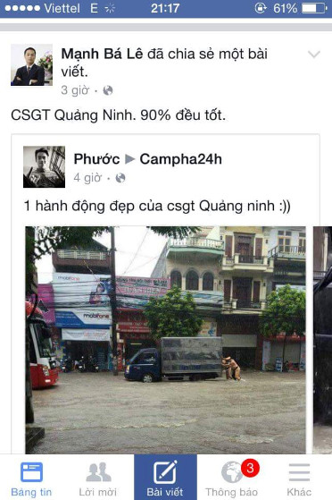 Trên mạng facebook ngay sau đó đã có rất nhiều hình ảnh đẹp về các chiến sĩ cảnh sát giao thông Quảng Ninh cùng nhiều bình luận rất xúc động...