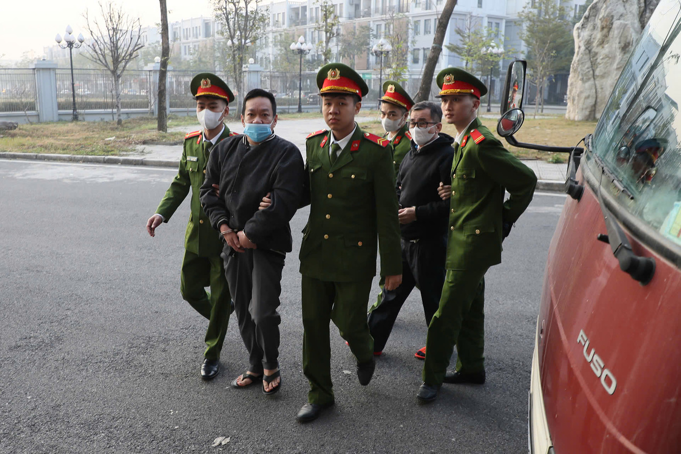 | Từ 7h, cảnh sát dẫn giải các bị cáo tới hội trường xét xử. |