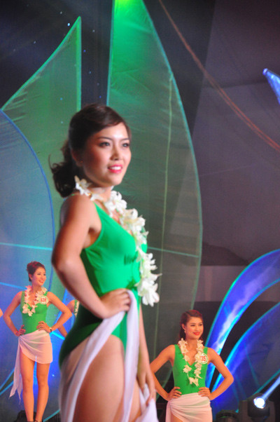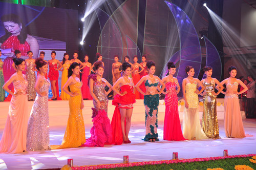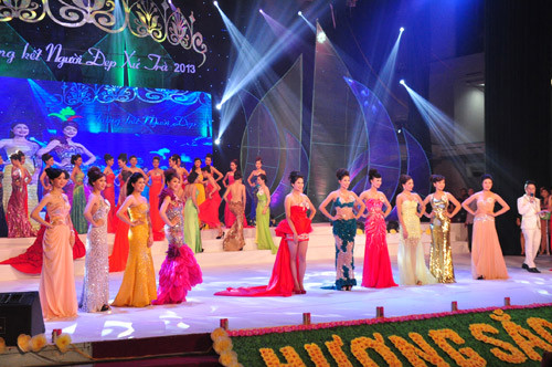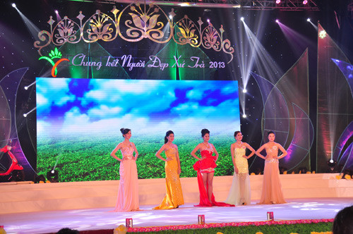 Các thí sinh tham dự đêm chung kết cuộc thi 'Người đẹp xứ Trà'.