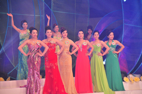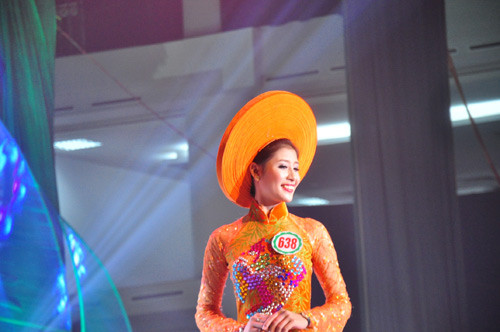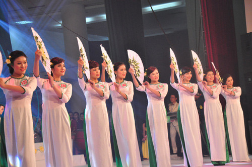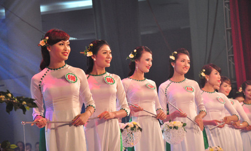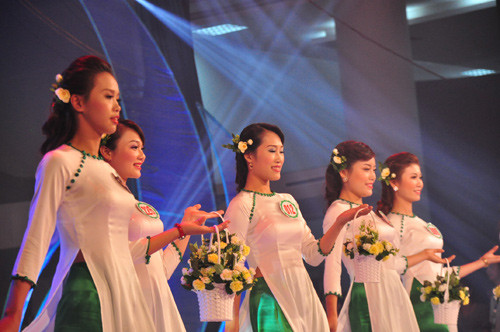 Một số thí sinh trong phần trình diễn áo dài: