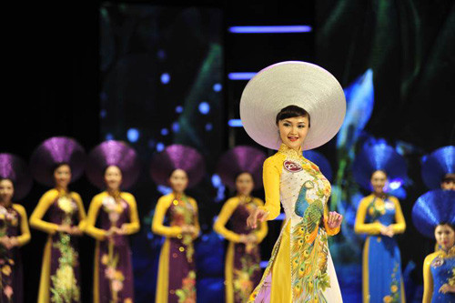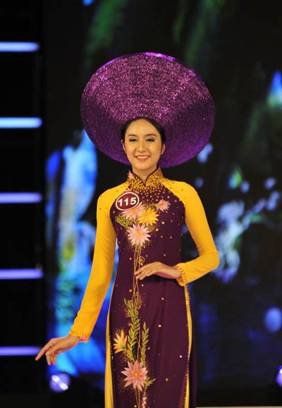 47 thí sinh trong trang phục áo dài tại đêm chung kết.