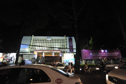 Bên ngoài Nhà hát Hòa Bình (TP HCM), nơi diễn ra đêm chung kết cuộc thi 'Nữ sinh viên Việt Nam duyên dáng 2013'.