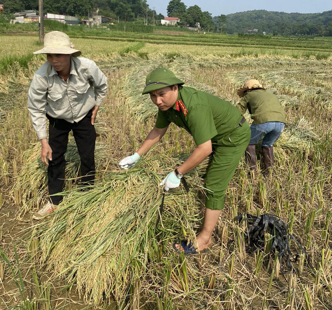 Với sự hỗ trợ của lực lượng Công an, nhiều ruộng lúa chín của người dân xã Cẩm Long đã được thu hoạch xong. Nhiều người dân đã rất cảm động khi những bao lúa được lực lượng Công an xã đưa về tận nhà.
