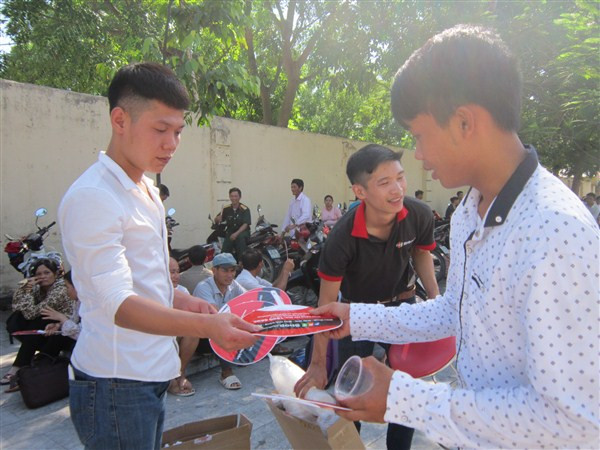 Phát phiếu cơm miễn phí, giá rẻ cho người nhà thí sinh.