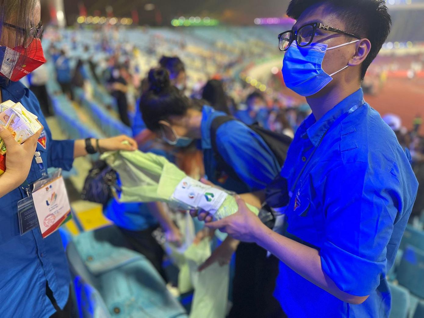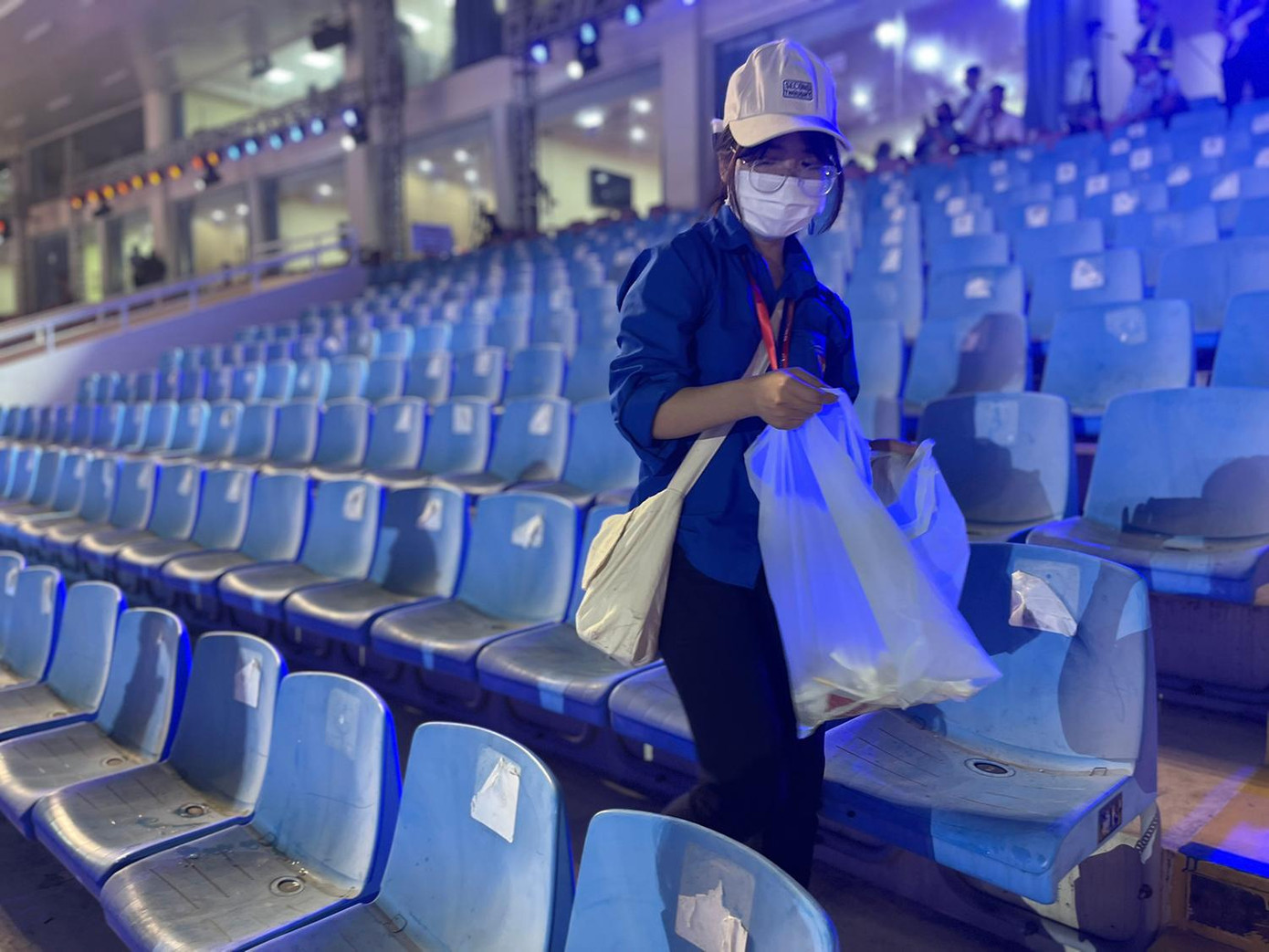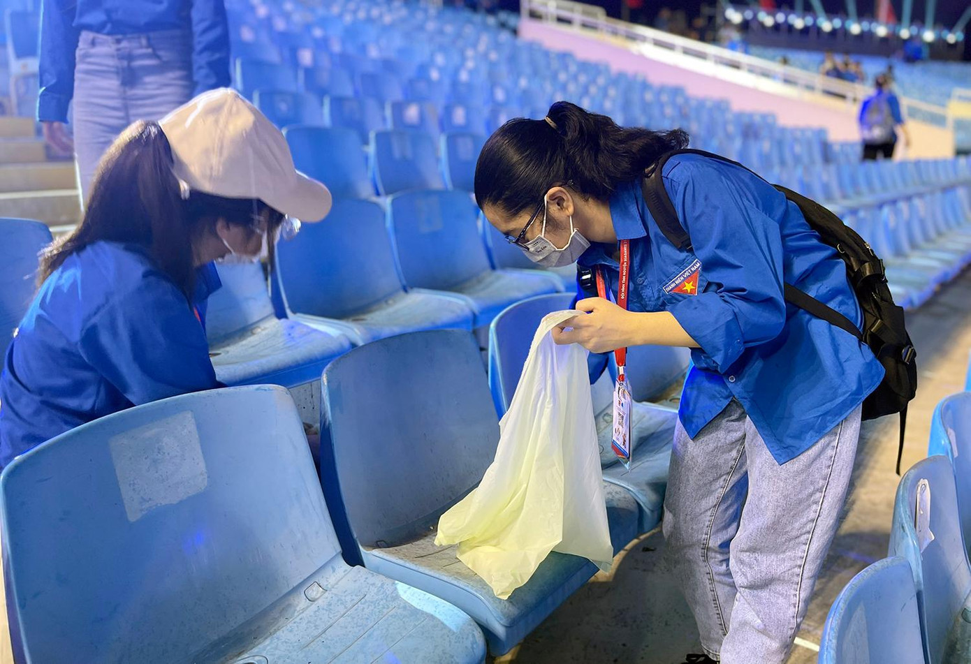 | Ngoài công việc chính được Ban Tổ chức giao thì ngay sau khi kết thúc khai mạc SEA Games 31, hàng nghìn tình nguyện viên đã tham gia công tác dọn dẹp vệ sinh môi trường trên khán đài SVĐ Quốc gia Mỹ Đình. |
