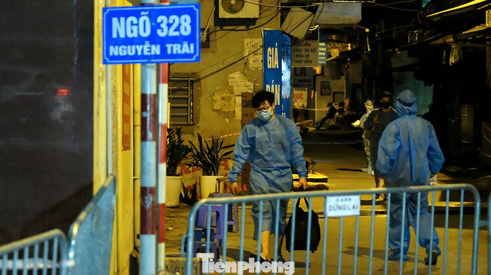 | Thời điểm khoảng 21 giờ (1/9), lực lượng chức năng quận Thanh Xuân vẫn đang khẩn trương tiến hành công việc di dời người dân khỏi 'ổ dịch' Thanh Xuân Trung (quận Thanh Xuân, Hà Nội). |