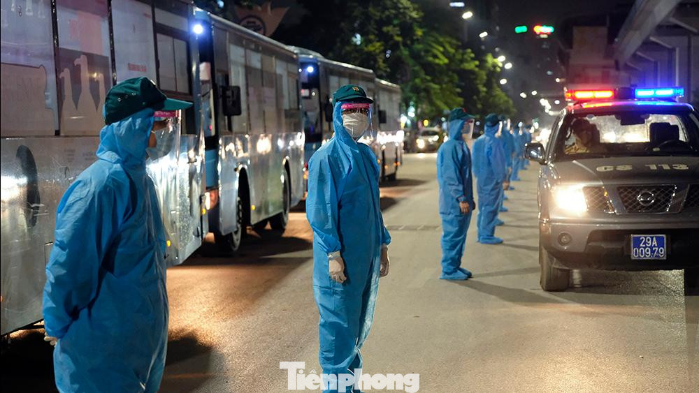 | Bắt đầu từ 18h30 hôm nay, lực lượng chức năng quận Thanh Xuân đã bắt đầu thực hiện đợt di chuyển những người dân đầu tiên ra khỏi khu vực phong tỏa tại phường Thanh Xuân Trung. |