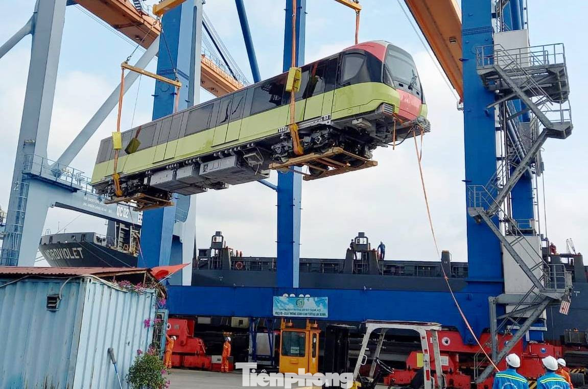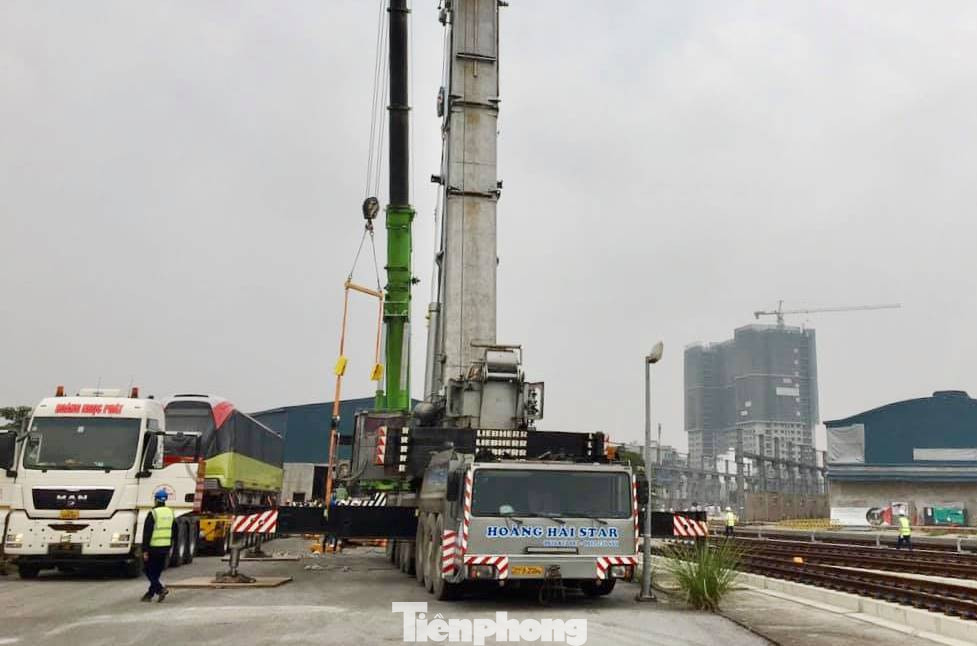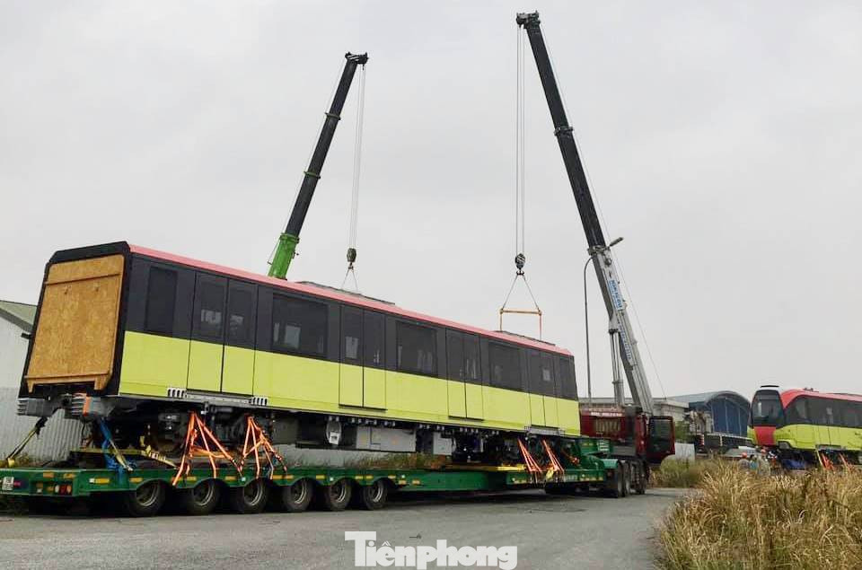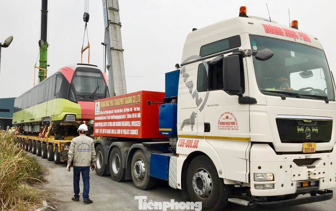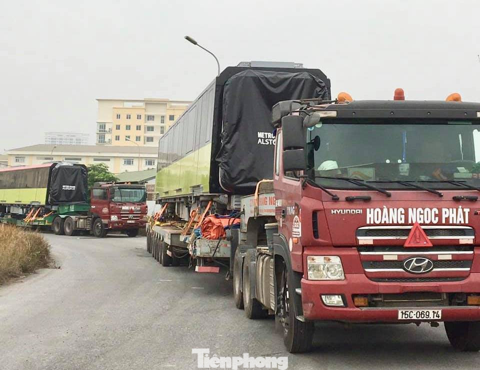 Trải qua chặng đường hơn 100 km bằng đường bộ, hiện đoàn tàu gồm 4 toa tàu, mỗi toa dài 80m đã được vận chuyển về depot (Nhổn).