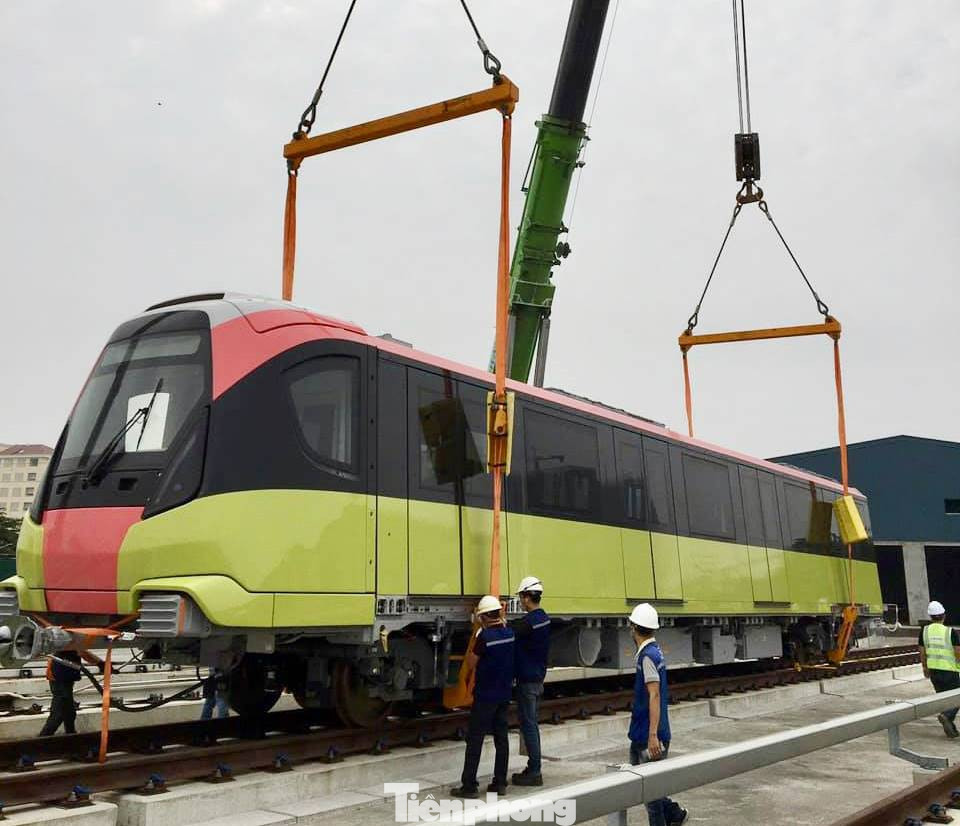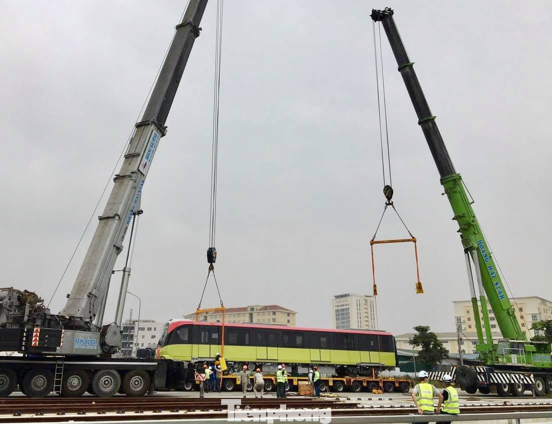 Đoàn tàu thứ nhất được cẩu xuống đường ray Nhổn