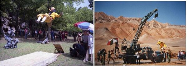Cũng chính vì thế, những màn bay lượn, thi triển võ nghệ của Ngộ Không lại tốn rất nhiều tâm sức của đoàn. Riêng các cảnh Ngộ Không bay lượn nhờ... dây cáp, Dương Khiết đã phải sang Hong Kong học hỏi kinh nghiệm, sau đó mới tiến hành thành công.