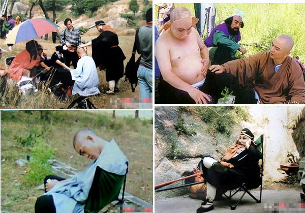 Trong phim, sư phụ rất e dè trước giới nữ, nhưng Đường Tam Tạng trên trường quay thì rất thích thú chụp ảnh mỹ nhân.