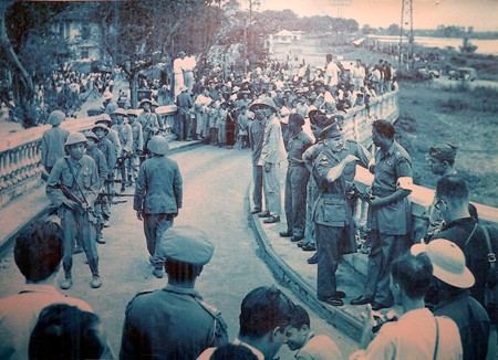 Ủy ban Quốc tế giám sát đình chiến tại đường dẫn lên cầu Long Biên.