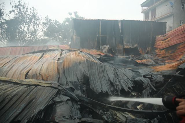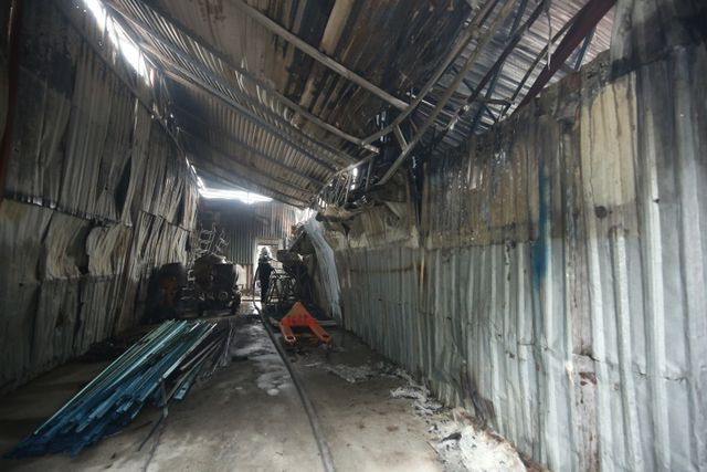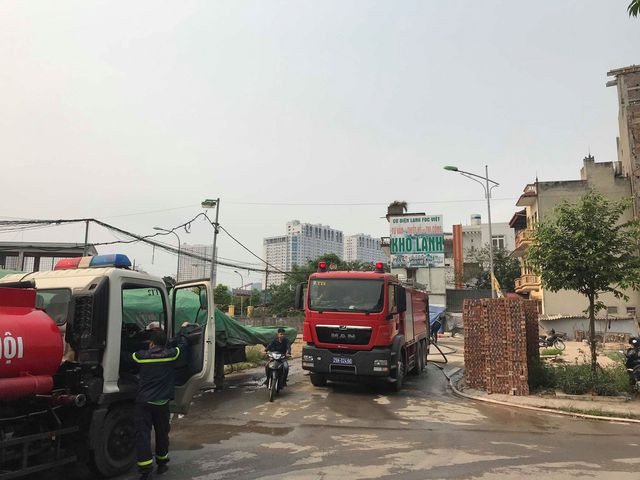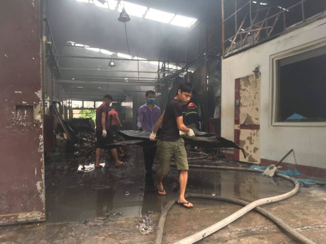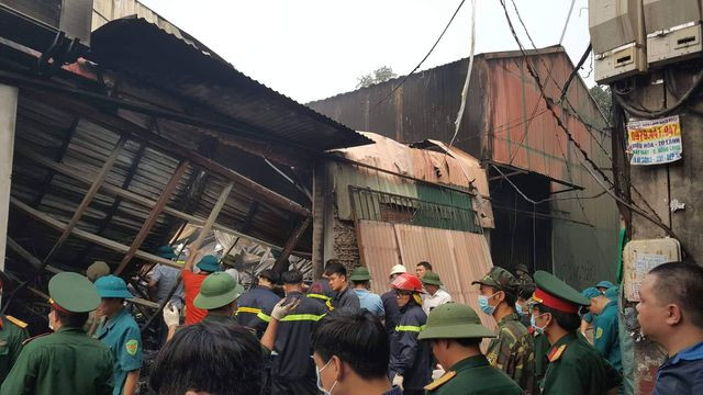 Hiện trường đổ nát tan hoang của 4 nhà xưởng bị "bà hỏa" thiêu rụi. Chủ tịch TP Nguyễn Đức Chung sáng nay có mặt tại hiện trường chỉ đạo công tác cứu hộ cứu nạn. Một nạn nhân được đưa ra khỏi hiện trường. Công an dựng rào phong tỏa hiện trường vụ cháy. Lực lượng cứu hỏa tiếp tục phun nước làm mát, rà soát, tìm kiếm người mắc kẹt; đồng thời khám nghiệm hiện trường vụ cháy. Nhiều xe cứu thương túc trực bên ngoài hiện trường.