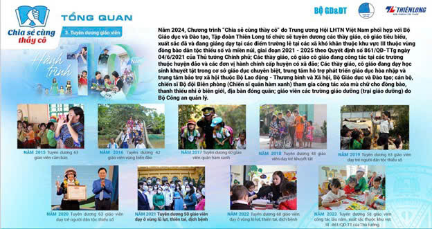 Chương trình Chia sẻ cùng thầy cô do Trung ương Hội LHTN Việt Nam, Bộ Giáo dục và Đào tạo, Tập đoàn Thiên Long phối hợp tổ chức thường niên, nhằm tôn vinh những thầy, cô giáo trong hành trình mang kiến thức, tình yêu thương đến các em học sinh; lan tỏa những câu chuyện đẹp về người thầy, người cô nhận phản hồi tích cực từ xã hội.