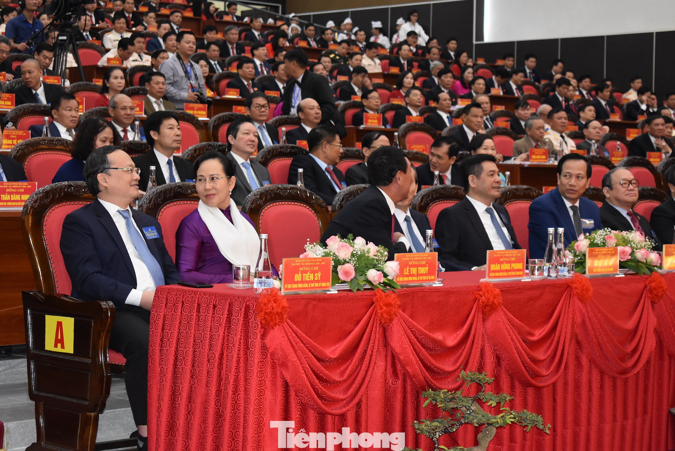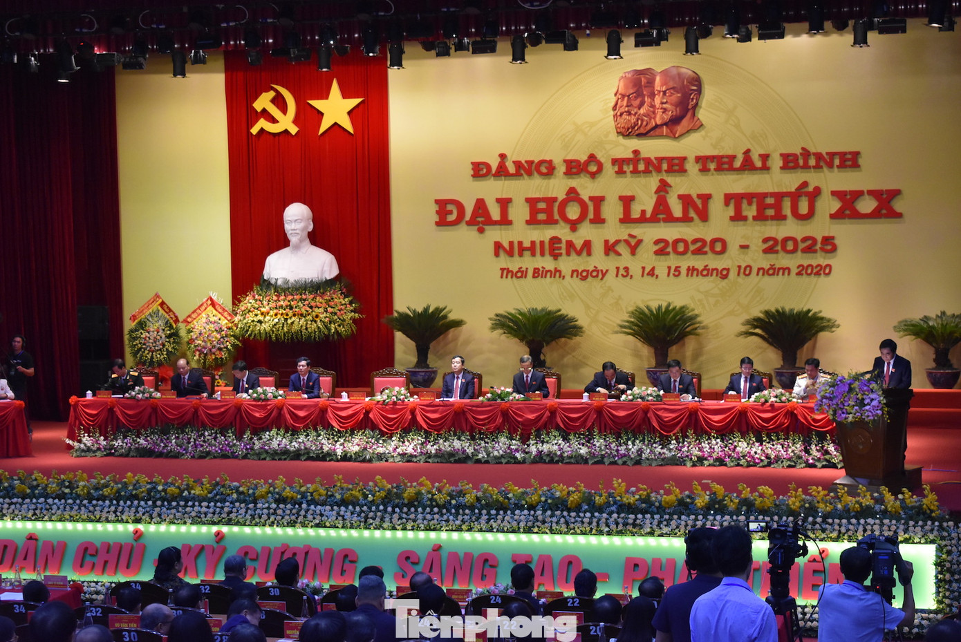 Lãnh đạo các Bộ ngành, các tỉnh đến dự Đại hội Đảng bộ tỉnh Thái Bình - Ảnh: Hoàng Long Tại phiên khai mạc, đại hội đã tiến hành nội dung bầu đoàn Chủ tịch đại hội và thẩm tra tư cách đại biểu. Kết quả, các đại biểu đều biểu quyết đồng ý đối với 350 đại biểu.