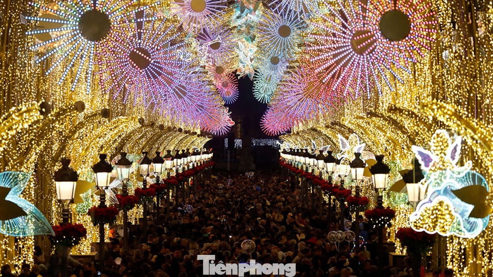 Người dân đang tập họp ở đường Marqués de Larios để tham gia lễ hội ánh sáng tại trung tâm thành phố Malaga, Tây Ban Nha.