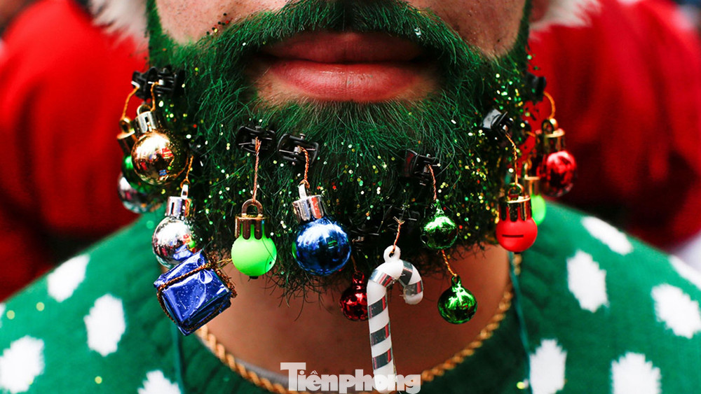 Bộ râu xanh ấn tượng của một người tham gia lễ hội SantaCon ở New York, Mỹ.