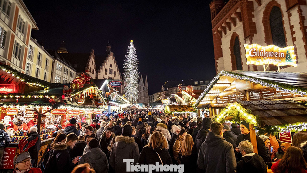 Hàng trăm người đang đi dạo tại chợ Giáng Sinh ở thành phố Frankfurt, Đức.