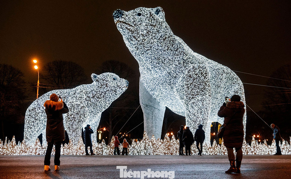 Người dân đang chụp ảnh tại lễ hội giáng sinh và ánh sáng tại công viên Gorky, Moscow, Liên bang Nga.