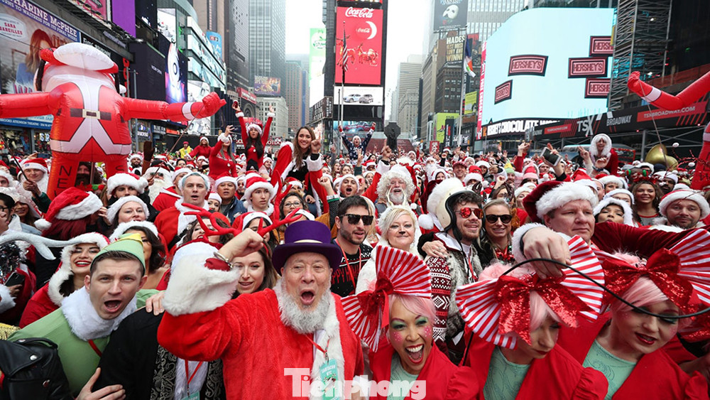 Người dân mặc trang phục ông già Noel tham gia lễ hội SantaCon tại quảng trường Time Square nổi tiếng ở New York, Mỹ.