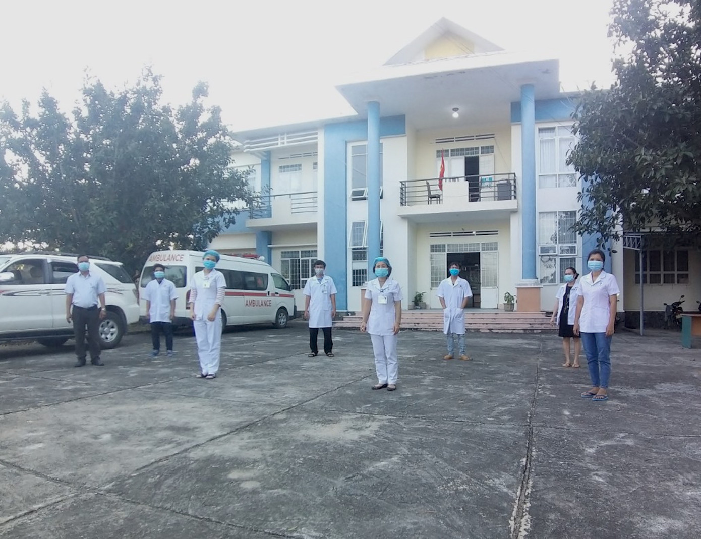 Các y bác sĩ ở Trung tâm Y tế huyện Ia Pa triển khai công việc vào buổi sáng, mỗi người đều cách nhau 2m