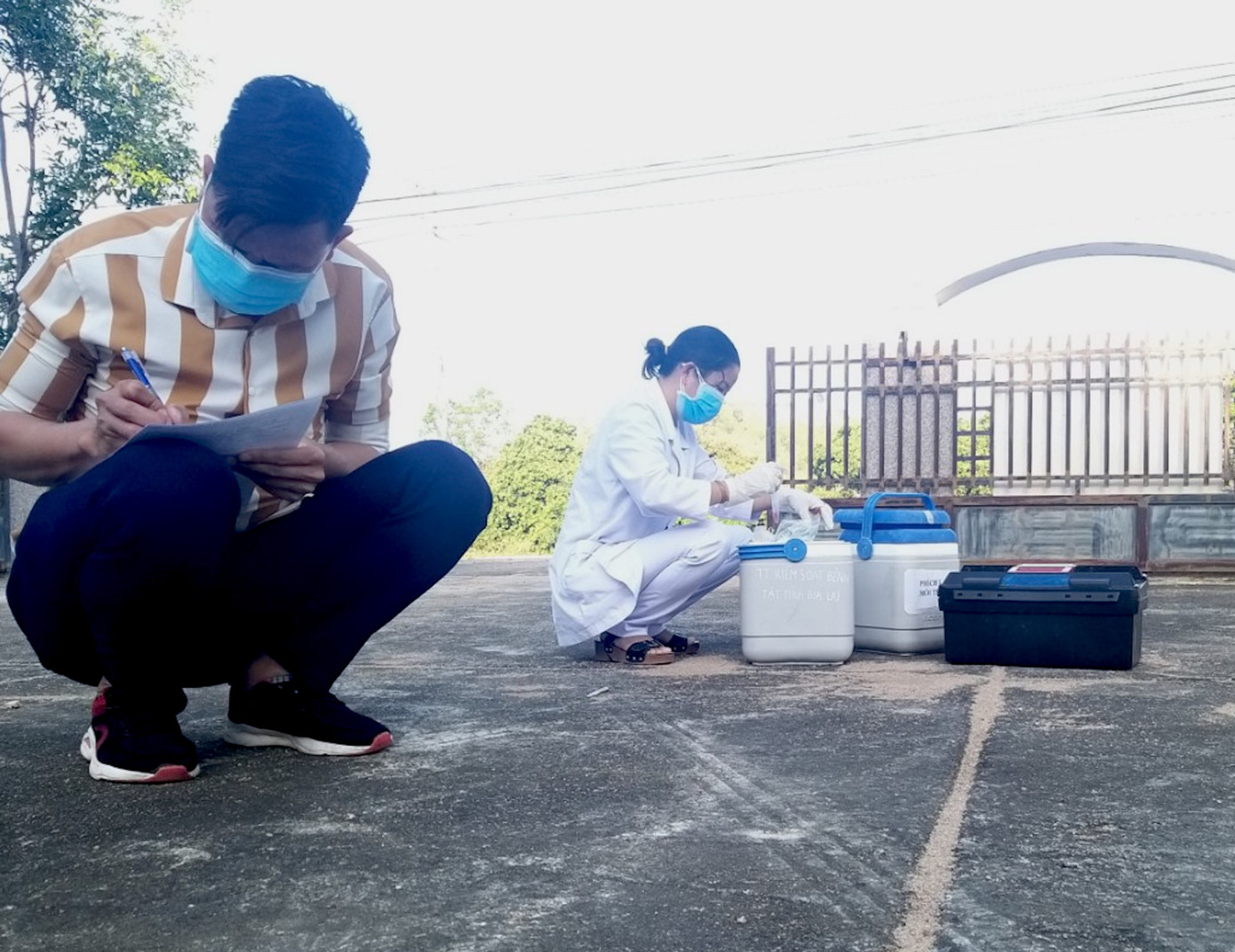 Cán bộ, chiến sĩ ở thị xã Ayun Pa hỗ trợ người dân khai báo y tế. Trước đó, hai vợ chồng ở phường Cheo Reo (thị xã Ayun Pa) đi dự đám cưới ở Hải Dương ngày 18/1, khoảng 9 ngày sau cơ quan xác định họ nhiễm SARS-CoV-2 khi đã đi nhiều nơi ở Gia Lai