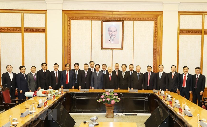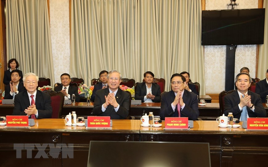 Tổng Bí thư, Chủ tịch nước Nguyễn Phú Trọng và các đại biểu dự buổi lễ. (Ảnh: Trí Dũng/TTXVN)