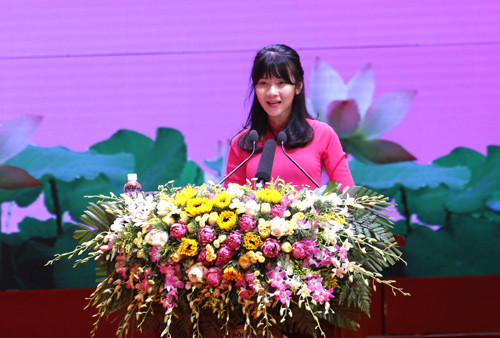 Sinh viên Trần Hoàng Mỹ Linh, trường Đại học Khoa học xã hội và nhân văn (Đại học Quốc gia Hà Nội) đại diện cho thế hệ trẻ phát biểu bày tỏ quyết tâm phấn đấu, học tập, rèn luyện theo gương Bác Hồ, góp sức trẻ xây dựng và bảo vệ đất nước.
