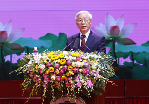 Tổng Bí thư Nguyễn Phú Trọng đọc diễn văn tại Lễ kỷ niệm 125 năm ngày sinh Chủ tịch Hồ Chí Minh.