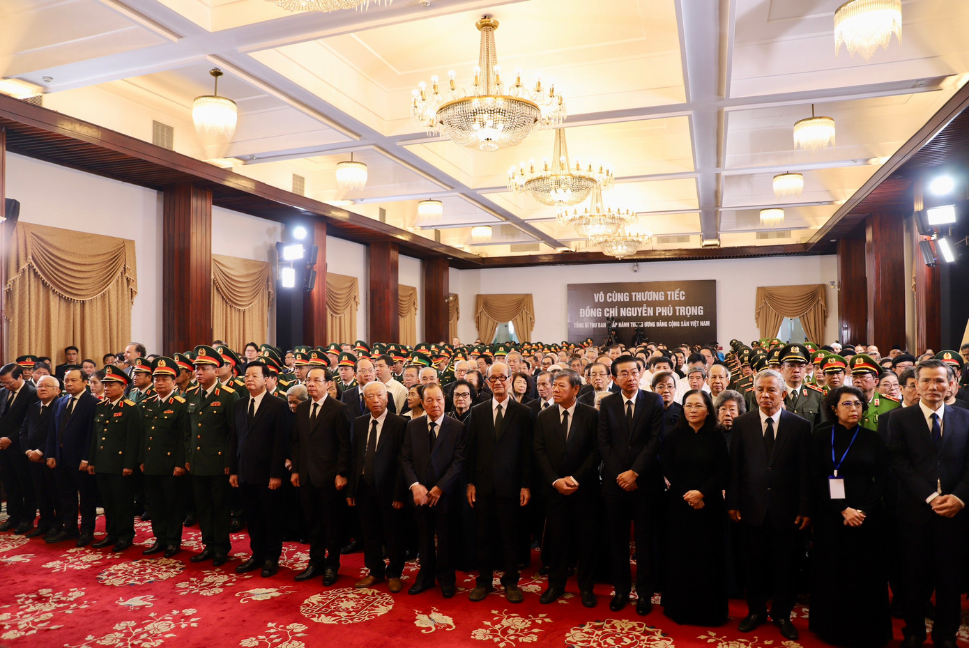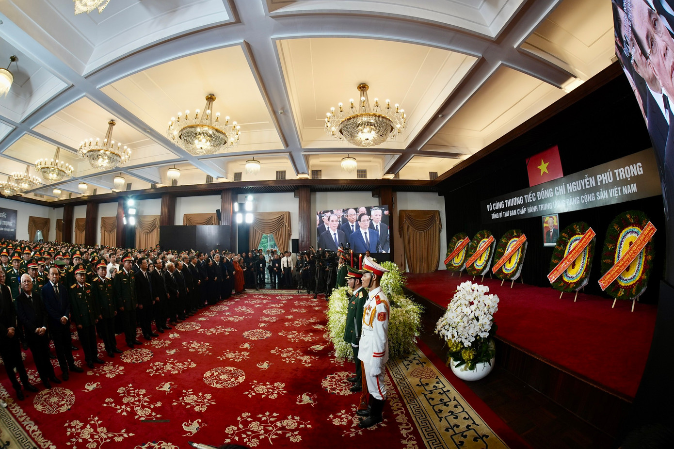 Sáng 25/7, tại Nhà tang lễ Quốc gia - số 5 Trần Thánh Tông (Hà Nội), Ban Chấp hành Trung ương Đảng, Quốc hội, Chủ tịch nước, Chính phủ, Ủy ban Trung ương Mặt trận Tổ quốc Việt Nam và gia đình đã tổ chức trọng thể Lễ viếng đồng chí Nguyễn Phú Trọng - Tổng Bí thư Ban Chấp hành Trung ương Đảng Cộng sản Việt Nam, theo nghi thức Quốc tang.