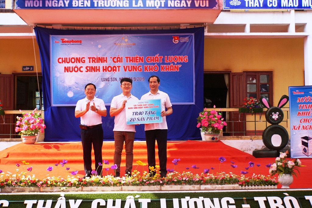 Nhà báo Lê Xuân Sơn, Tổng Biên tập báo Tiền Phong và ông Uhm Seon Jung, Phó Tổng GĐ Tập đoàn Tân Á Đại Thành, đại diện Ban Tổ chức chương trình trực tiếp đi trao tặng. Đón nhận chương trình tại địa phương có ông Dương Xuân Huyên, Phó Chủ tịch UBND tỉnh Lạng Sơn. Theo đó, Chương trình trao tặng 20 sản phẩm (máy lọc nước, bồn nước và bình nước nóng) tại địa bàn Lạng Sơn.