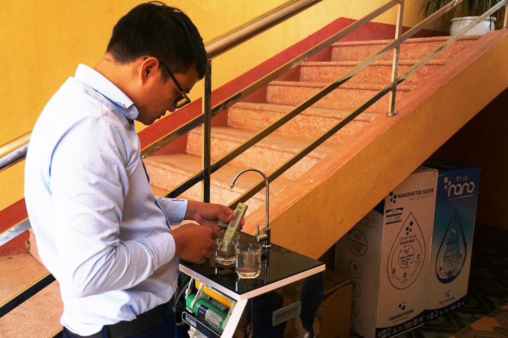 Ngay sau chương trình, máy lọc nước đã được lắp đặt tại trường Tiểu học xã Châu Sơn.