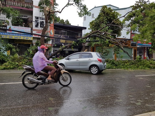 Trong bão có mưa to khiến một số tuyến đường như Đặng Thái Thân, Trường Chinh bị nước ngập sâu, không thể lưu thông. Các biển báo nguy hiểm giăng lên chằng chịt. Trước các công sở, cán bộ nhân viên tạm nghỉ việc để dọn dẹp, vệ sinh.