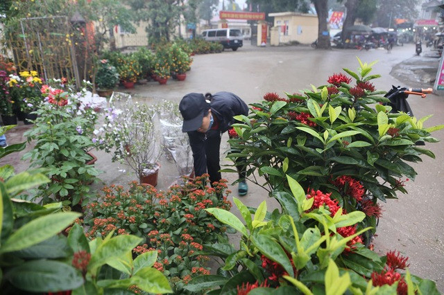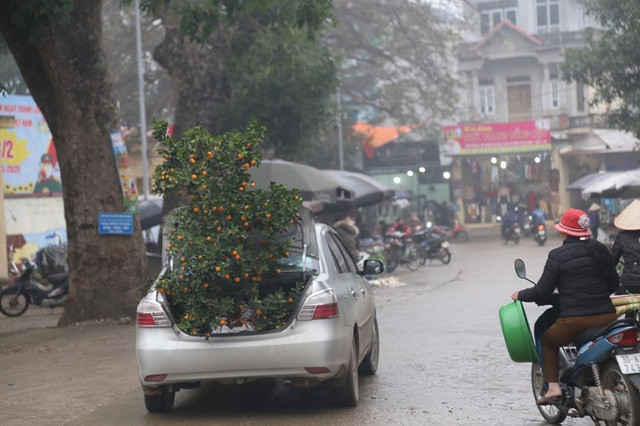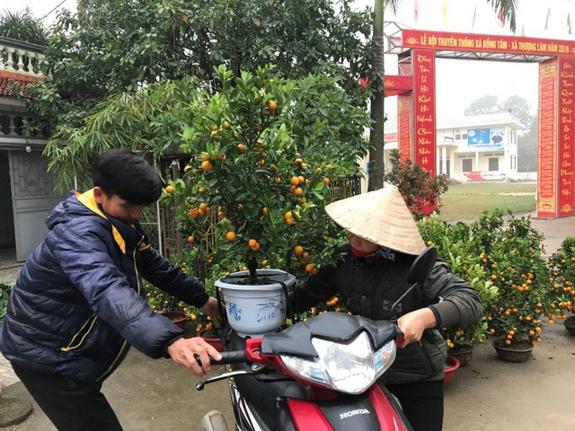Con đường từ cổng làng thôn Hoành đến trụ sở UBND xã Đồng Tâm đã tràn ngập đào, quất, cây cảnh... với đủ các kiểu dáng, thế đứng khác nhau.