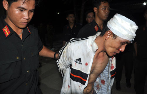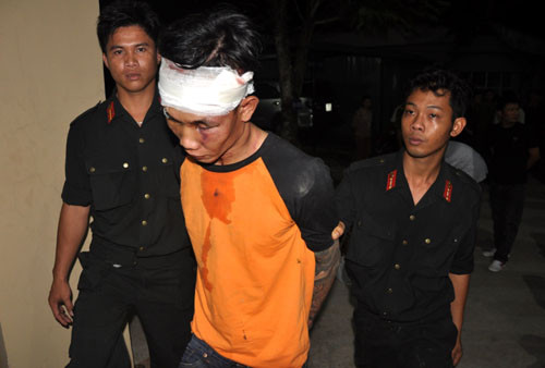 Khi lực lượng chức năng có mặt tại hiện trường, 7 nghi can bỏ chạy trong đó có 2 nghi phạm chạy lên xe khách (lưu thông theo hướng Nam – Bắc). Hai nghi phạm này đã khống chế người đi trên xe. Ngay lập tức xe của lực lượng công an đuổi theo xe khách. Thấy bị truy đuổi, hai nghi phạm nhảy xuống xe chạy trốn.