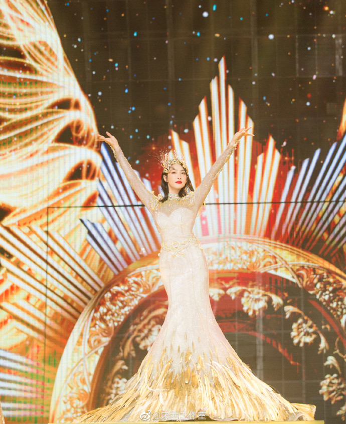 Studio chia sẻ: “Lộng lẫy và xinh đẹp, Nữ thần Kim Ưng đã xuất hiện tại lễ khai mạc Liên hoan nghệ thuật truyền hình Kim Ưng lần thứ 13” (Ảnh Weibo)