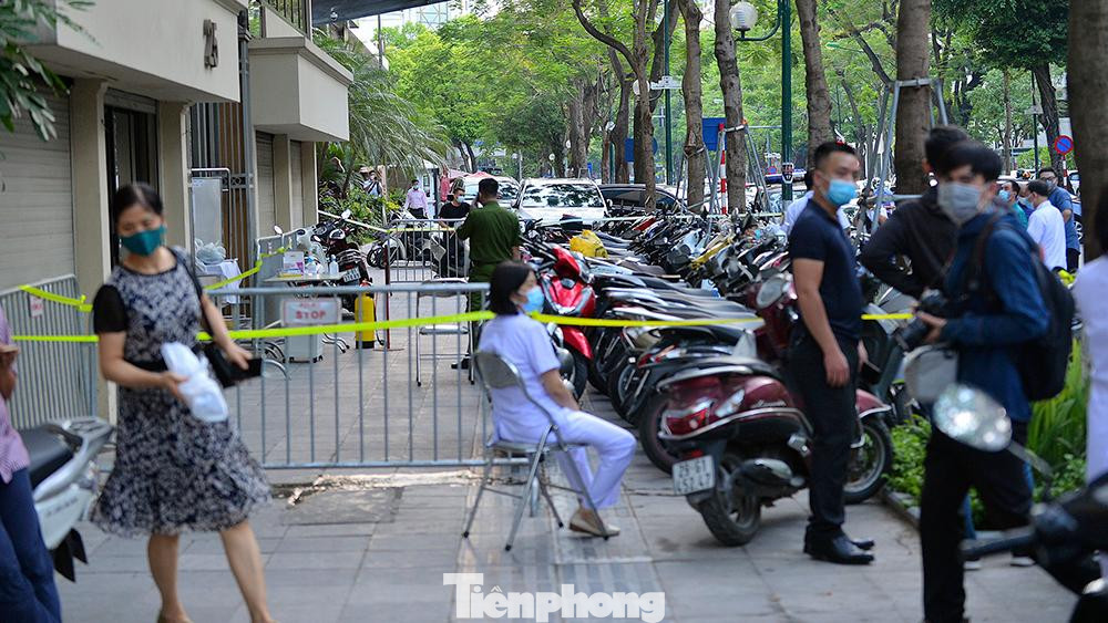"Lực lượng chức năng đã khoanh vùng tòa nhà, tiến hành rà soát các trường hợp liên quan. Sơ bộ có khoảng 21 trường hợp F1". Phó Chủ tịch UBND quận Hoàn Kiếm Nguyễn Quốc Hoàn cho biết.