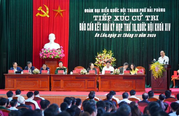 Thủ tướng Nguyễn Xuân Phúc và các đại biểu Quốc hội, cử tri TP. Hải Phòng. Ảnh: VGP/Quang Hiếu