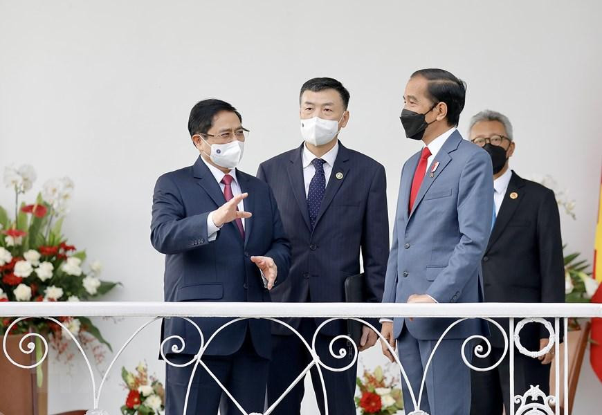 Thủ tướng Phạm Minh Chính và Tổng thống Indonesia Joko Widodo.Ảnh: Dương Giang/TTXVN