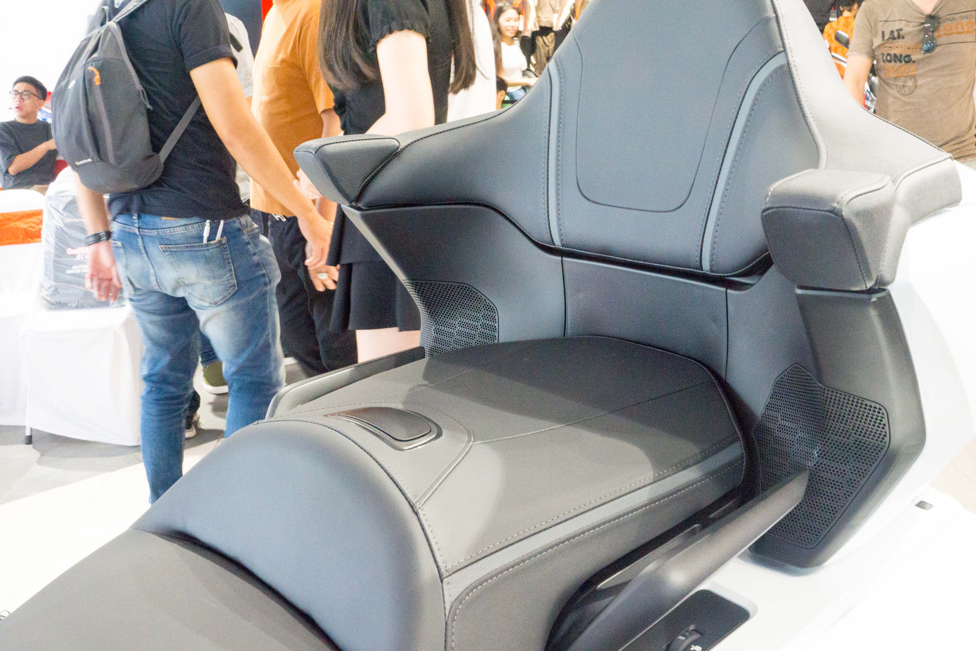 Hành khách ngồi phía sau có thể tận hưởng sự thoải mái với tựa lưng và tựa tay đặc trưng của dòng Honda Goldwing.
