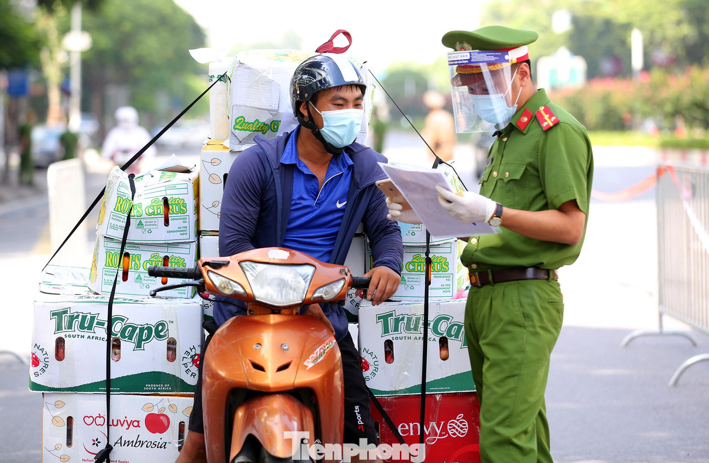 | Sáng 17/8, Tổ công tác số 3 (phụ trách khu vực quận Đống Đa, quận Cầu Giấy) chốt chặn tại đường Nguyễn Chí Thanh có 15 cán bộ, chiến sĩ của các lực lượng (CSGT, Cảnh sát cơ động, Cảnh sát hình sự...). |