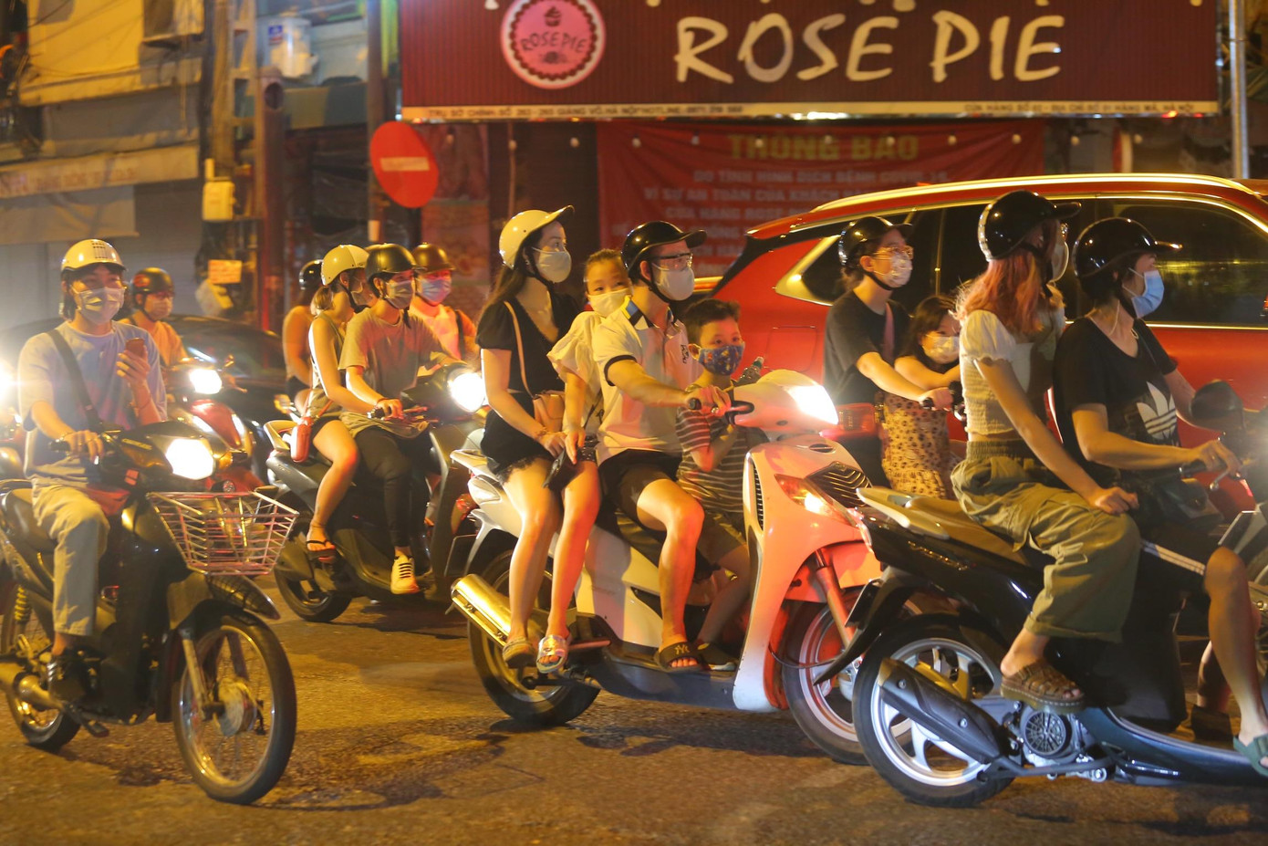 Đây cũng là ngày đầu tiên thành phố Hà Nội thực hiện nới lỏng giãn cách, bỏ quy định giấy đi đường nên lượng người lên phố rất đông.