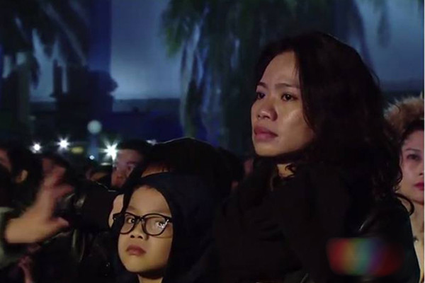 Vợ và con Trần Lập ngồi dưới hàng ghế khán giả lặng lẽ theo dõi anh hát. Thi thoảng chị cười nhưng khoé mắt thì ngấn lệ vì thương chồng.