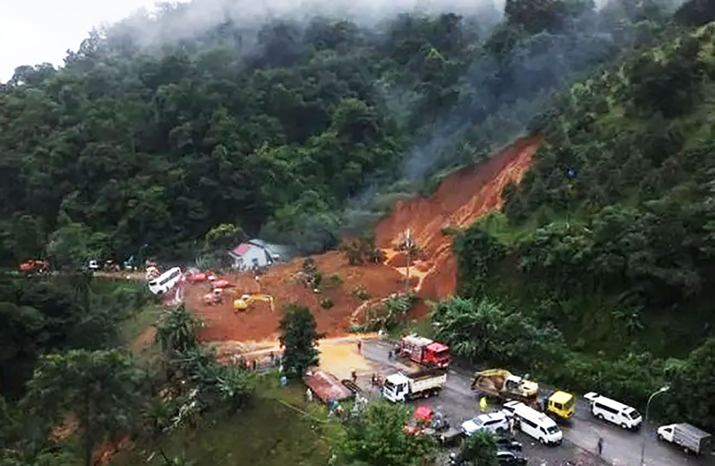 | | Do điều kiện thời tiết xấu, lực lượng chức năng gặp khó khăn trong việc tìm kiếm nạn nhân vụ sạt lở, cũng như di dời đất đá, khơi thông tuyến đường. Ảnh: D.P | |