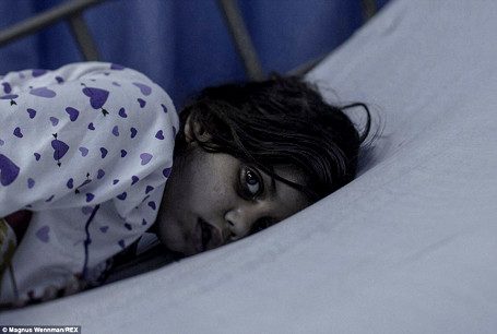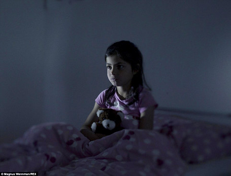 Cô bé Walaa 5 tuổi cũng rất sợ giấc ngủ bởi chính khi em đang ngủ, những cuộc tấn công thường xảy ra ở quê nhà - thành phố Aleppo (Syria).