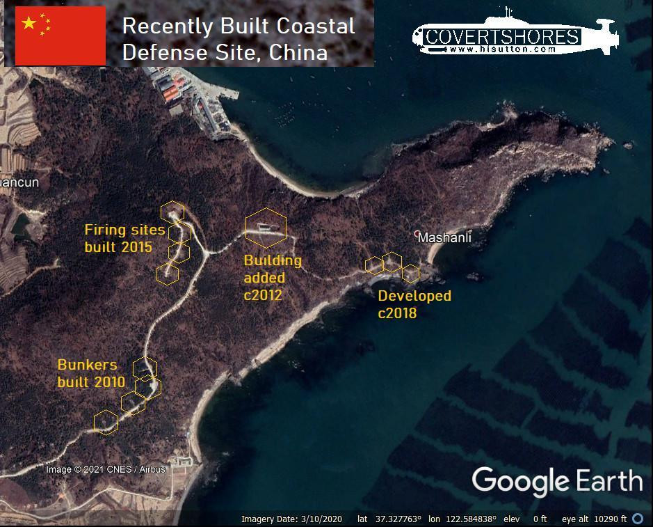 Theo cây viết H.I Sutton chuyên theo dõi các hoạt động hải quân thế giới, đặc biệt là các hoạt động tàu ngầm và hệ thống phòng thủ hải quân, có ít nhất một mạng lưới phòng thủ cổ điển như thế được xây dựng gần đây, trên mũi đất ở Vinh Thành, Sơn Đông. Địa điểm này, nhìn ra biển Hoàng Hải, là điểm gần như xa nhất về phía đông trên đất liền của tỉnh Sơn Đông. Địa điểm này cũng có thể được xem xét trong bối cảnh chuỗi phòng thủ trên lối vào Biển Bột Hải, chỉ xa hơn một chút về phía bắc.