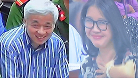 Những giây phút cười tươi hiếm hoi của 2 vợ chồng bầu Kiên tại tòa.