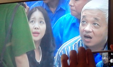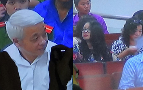 Vợ chồng bầu Kiên khắc khoải nhìn nhau tại tòa. Ảnh: Đời sống pháp luật