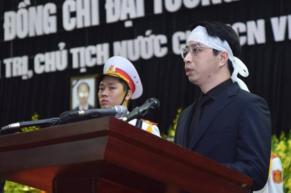 Ông Trần Quân, con trai cố Chủ tịch nước Trần Đại Quang, đáp từ. Ảnh:Vnexpress